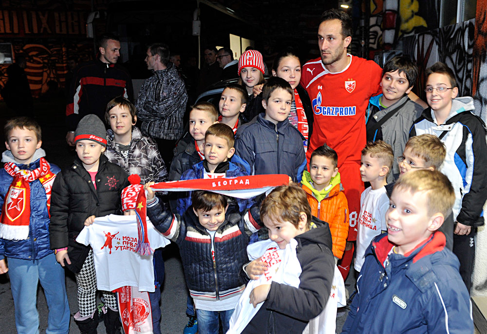 Милуновић и Араухо са децом  Александар Ковачевић  Драган Мрђа са малишанима  Ненад Милијаш са децом  И његова прва утакмица...