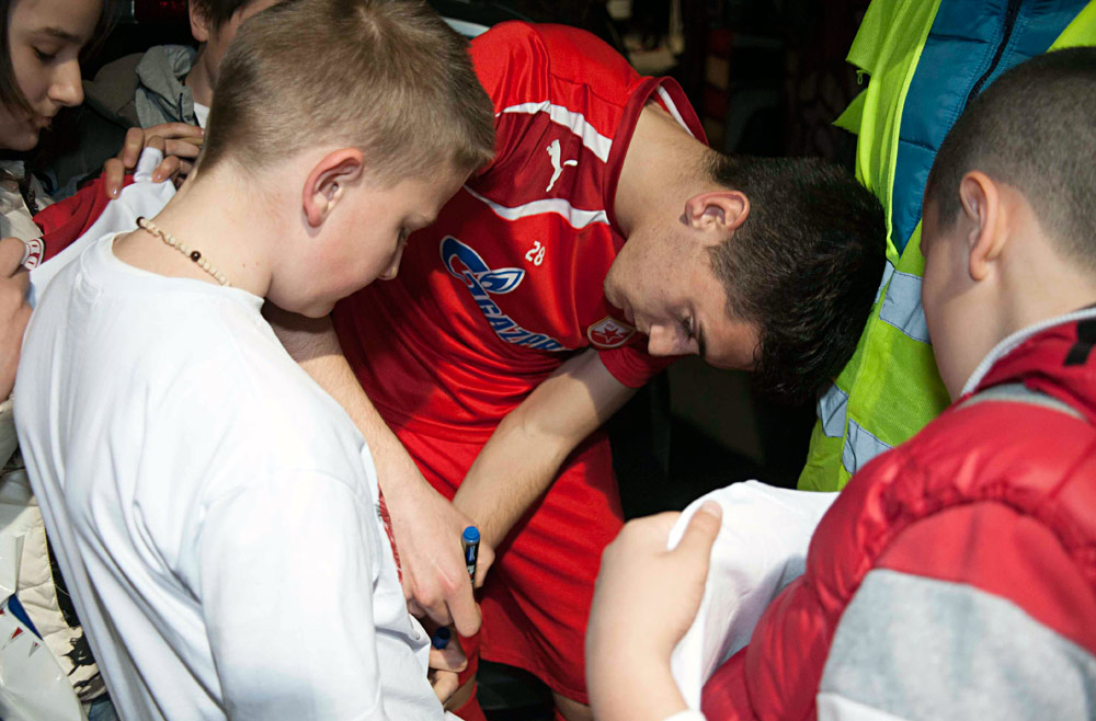 Ковачевић окружен децом  Нејц Печник и учесници акције "Моја прва утакмица"  Вукан Савићевић са децом  Савићевић потписује мајицу  Предраг Рајковић са децом  Оњило Ифеани међу малишанима  Саво Павићевић са децом