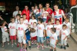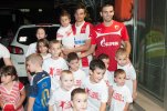 Фудбалери Црвене звезде са децом  Вукан Савићевић и учесник акције "Моја прва утакмица"  Нејц Печник и Марко Петковић са малишанима