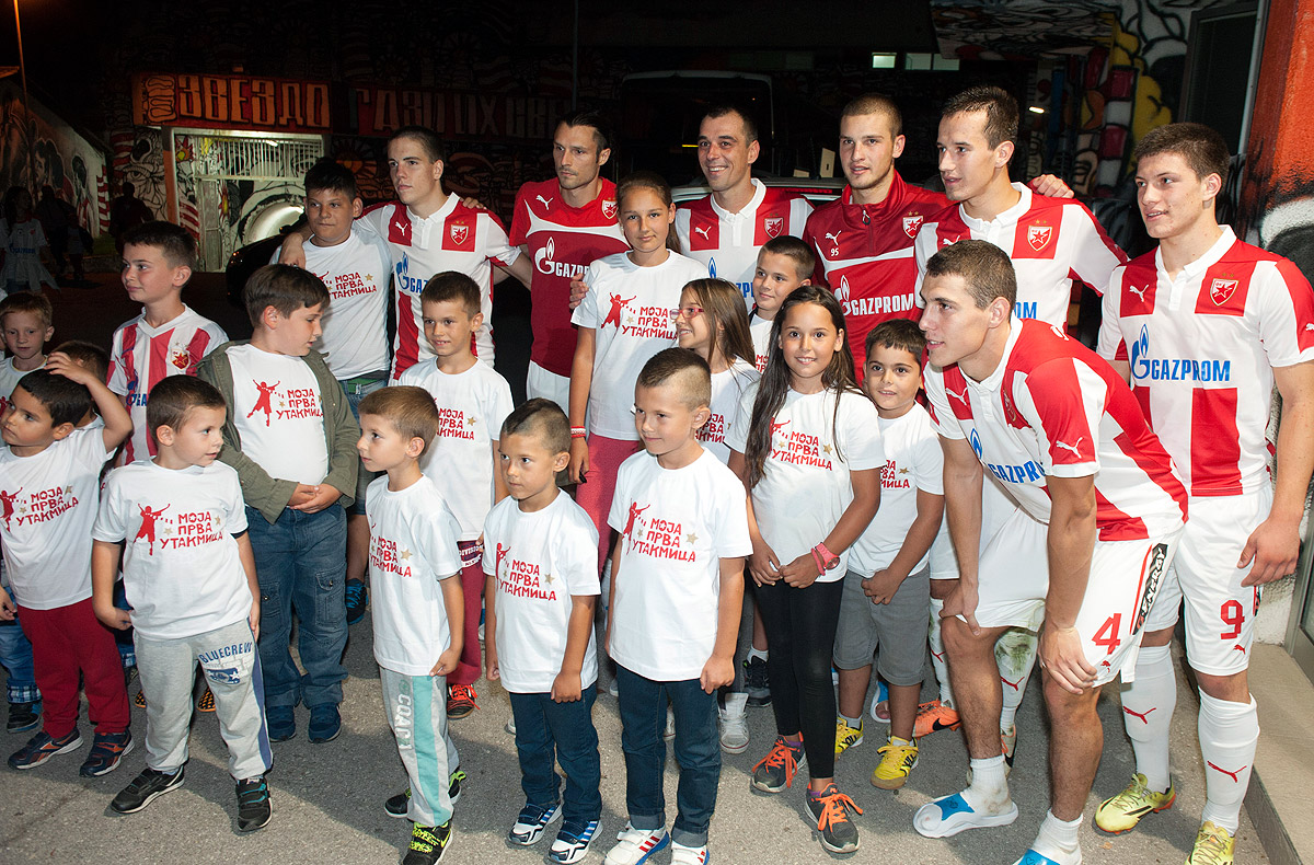 Звездини фудбалери са децом  Сликање са малишанима  Вукан Савићевић са децом  Нејц Печник  Ненад Милијаш и учесник акције "Моја прва утакмица"  Тренер Ненад Лалатовић са децом